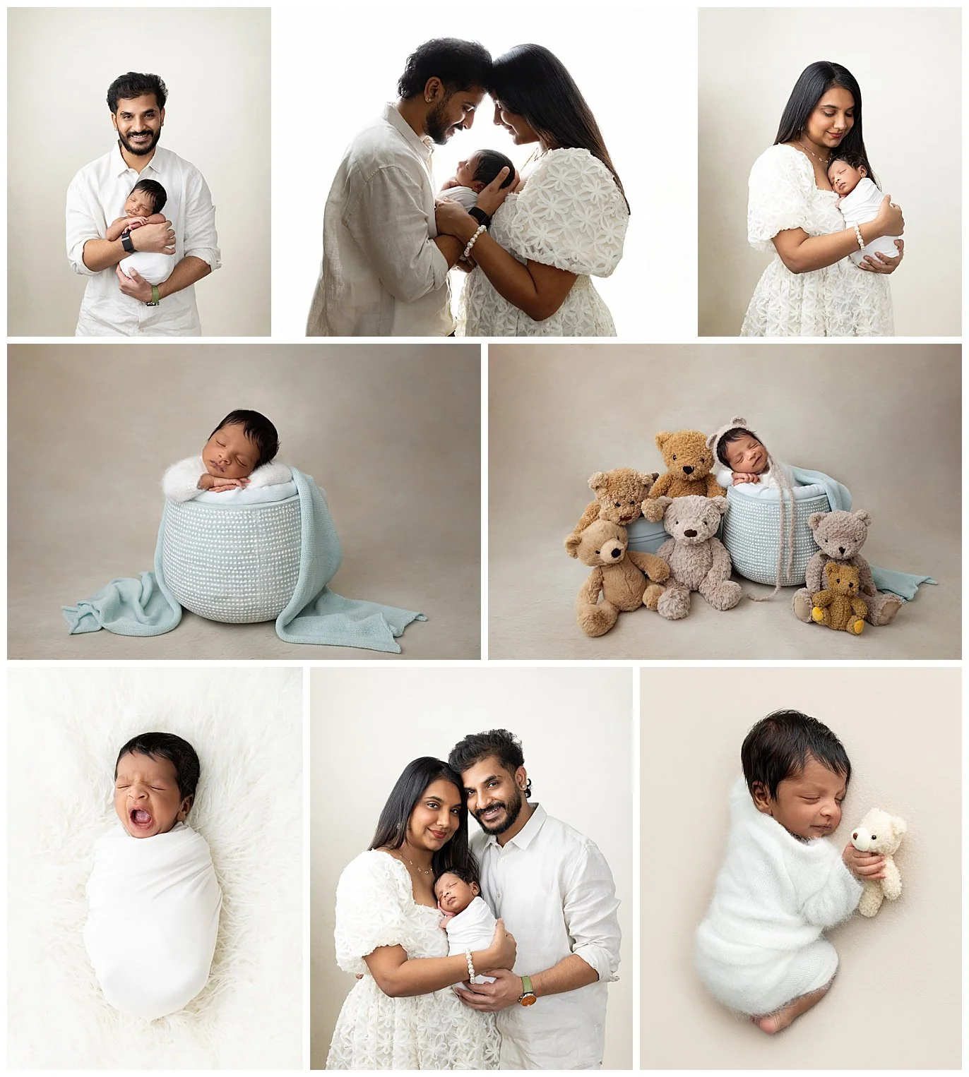 We just completed this gorgeous newborn session with this little cutie. Don’t you love the yawn photo? When planning the session, Mom asked for teddy bears. We added a few teddy bears in the scenes to help tie together a common theme. We also worked with lighter colors, which are very popular in newborn photos.